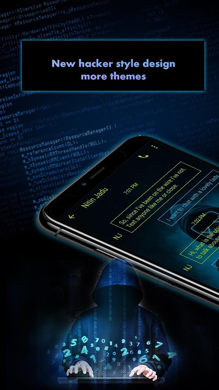 💬 Messenger for people who love hacking theme so much. It will give so much wow effect on your phone and make this amazing messenger work perfectly in any device.