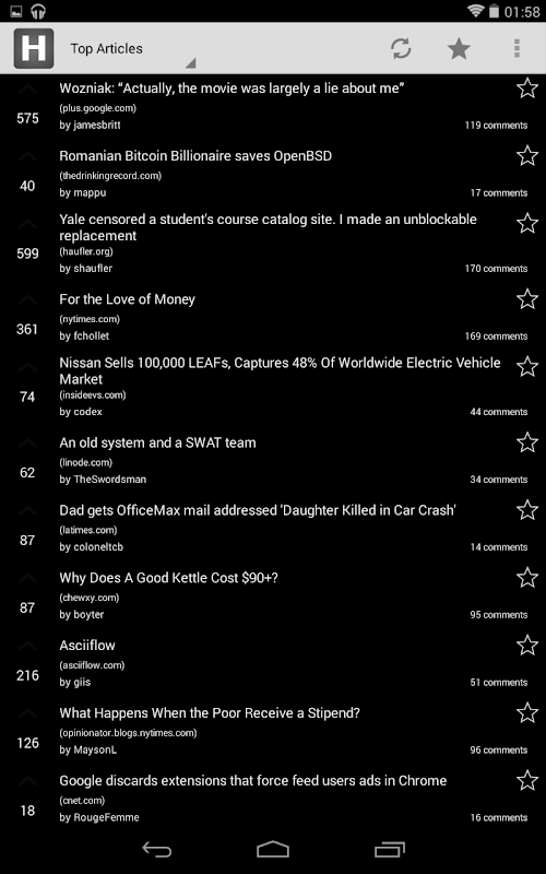 Hacker News Android is an open-source full-featured app for Hacker News (http://news.ycombinator.com/).