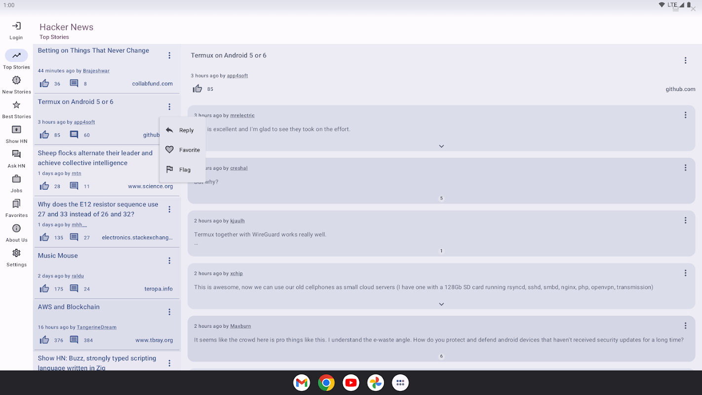 تطبيق Hacker News الذي يدعم Android 12 Material You على الهواتف والأجهزة اللوحية.