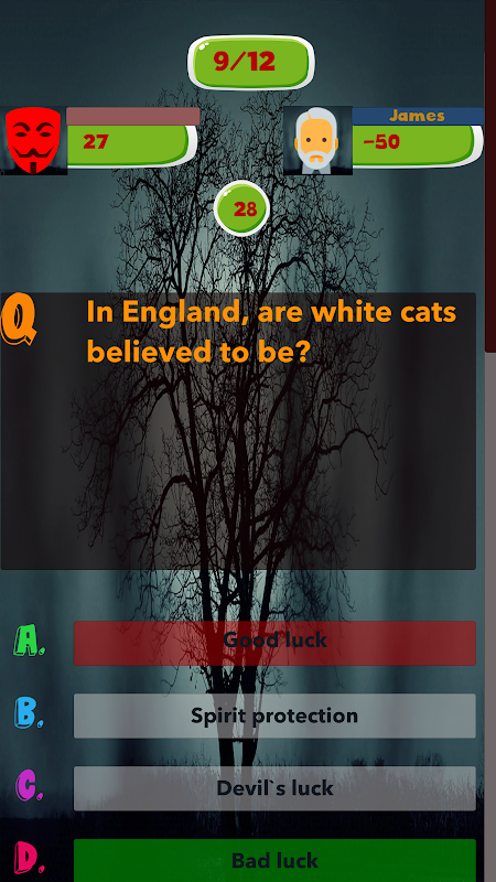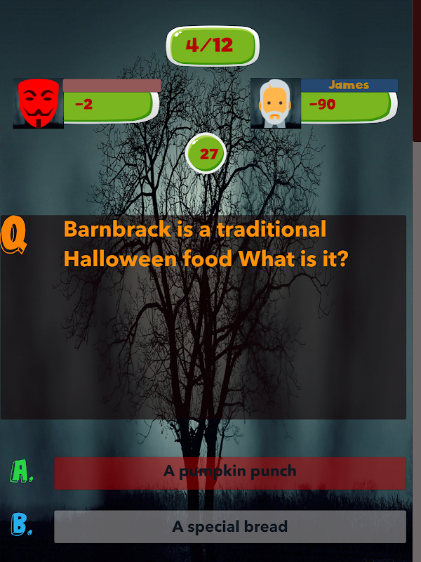 تساعد لعبة الهالوين هذه المستخدم على شحذ معرفته وحواسه ، ومساعدته على الاستعداد للاختبارات أو الاختبارات التي تعتمد على جميع جوانب عيد الهالوين وتساعده على زيادة معرفته. يستهدف هذا التطبيق الأشخاص من جميع الأعمار ، حتى الأطفال يمكنهم الاستمتاع بالاختبارات التي تم إنشاؤها بواسطة هذا التطبيق ويمكن أن يعزز معرفتهم لعيد الهالوين. يمكن استخدام هذا التطبيق لإعداد مسابقات المدرسة والجامعات والجامعات وكذلك اختبارات الدخول. يحتوي هذا التطبيق على ميزات رائعة مثل تلوين الأزرار باللون الأخضر إذا كانت الإجابة صحيحة أو تلوين الزر باللون الأحمر لأن الإجابة خاطئة. يوفر وظائف متعددة اللاعبين والتي تمكنك من اللعب ضد اللاعبين حول العالم. يحتوي على رسومات جيدة وإعلانات أقل. هذا التطبيق فعال للغاية ، تم تطويره بطريقة تمكنه من العمل بسلاسة في أي جهاز.