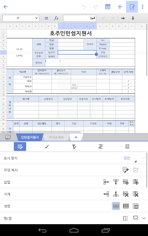- 셀 삽입, 행 삽입, 열삽입, 시트 삽입