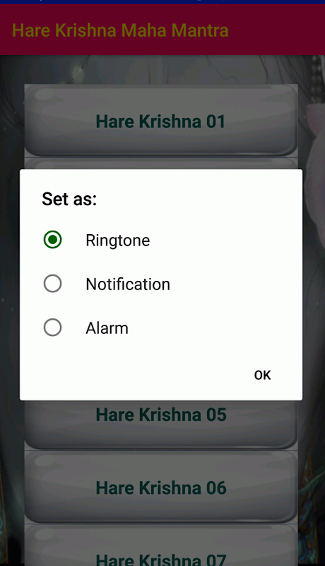 استمتع بـ 12 مجموعة صوتية من Hare Krishna Maha Mantra Dhun. نغمة + غير متصل.