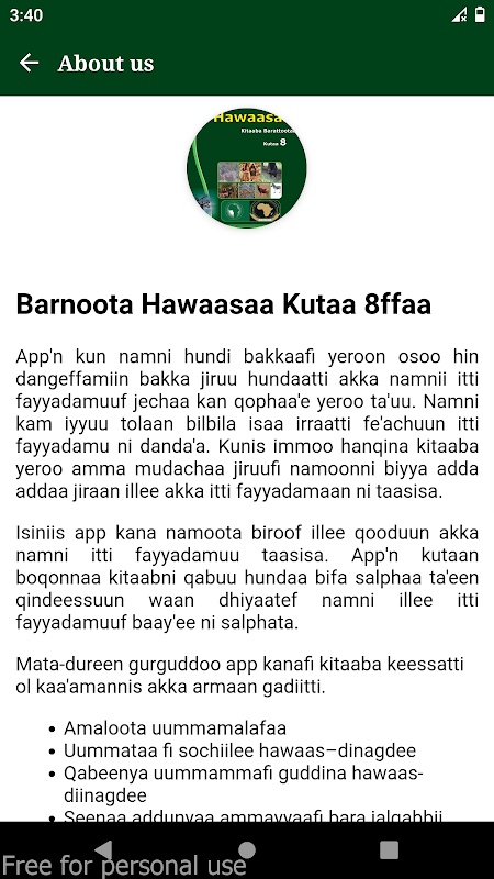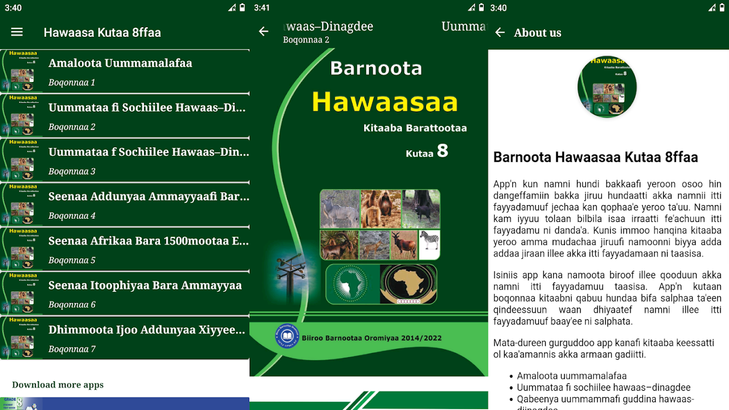 تم تصميم هذا التطبيق لتزويد جميع الطلاب في المجتمع بإمكانية الوصول الرقمي إلى كتبهم المدرسية على هواتفهم. وهذا يعني أنك لم تعد بحاجة للقلق بشأن نسيان كتبك أو فقدانها. نظرًا لأن معظم الأشخاص في المجتمع لديهم إمكانية الوصول إلى الهواتف المحمولة، فإن هذا التطبيق يوفر حلاً تعليميًا مناسبًا ويمكن الوصول إليه. يمكنك بسهولة مشاركة هذا التطبيق مع الآخرين. تم تصميم التطبيق لسهولة الاستخدام، مع تنظيم واضح للفصول والأقسام.