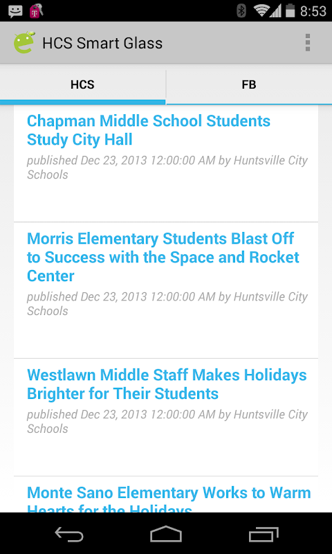 Note: This app was not created by Huntsville City Schools. HCS Smart Glass does not own any of the content it is only pulling the information together in a single location for the user.