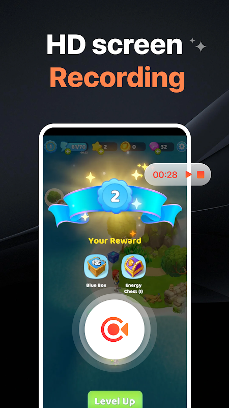 HD Recorder هو تطبيق قوي وسهل الاستخدام لتسجيل الشاشة مصمم لتقديم لقطات فيديو ولقطات شاشة عالية الجودة. فهو يمكّنك من تسجيل مقاطع الفيديو والبرامج التعليمية واللعب ومكالمات الفيديو وأي لحظة تعتز بها بسهولة.
