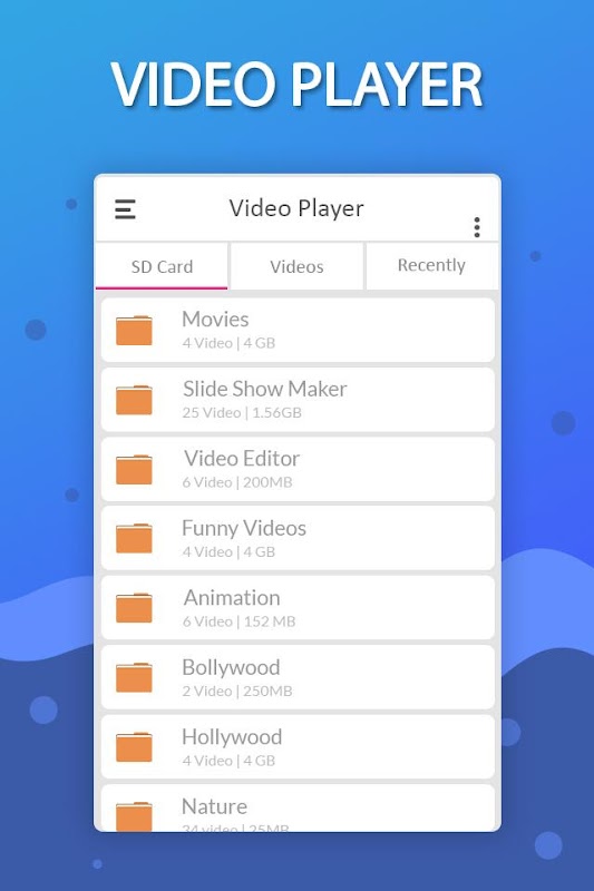 Video player for android is high quality media player with elegant design . Video player plays all types of video and audio files including MKV , MP4 , MP3 , AVI , MOV , Ogg , WAV , FLAC , TS , M2TS , Wv and AAC . Adjust audio experiance including bass and treble with powerful and well-designed equalizer.
