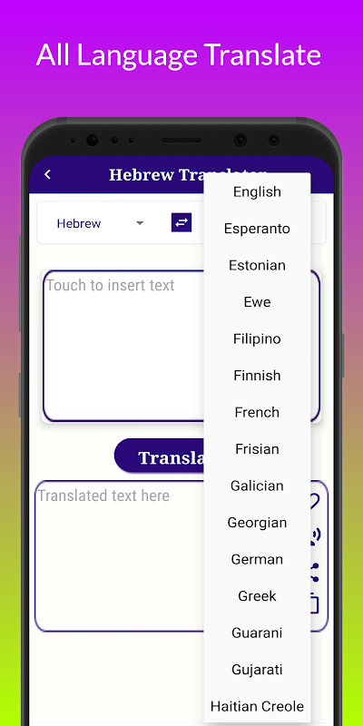 * All in One Hebrew to All Language Translator app.