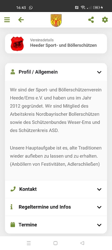 يوفر هذا التطبيق معلومات عن مواعيد الأندية والمجموعات والجمعيات من Heede في Emsland. ما عليك سوى اختيار مجموعتك ، ويمكن عرض الفترة الزمنية المطلوبة والمواعيد المحلية في أي مكان.