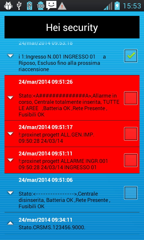 Permette inoltre di visualizzare tutti gli SMS inviati dalla centrale all’utente.