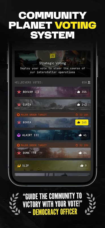 صوّت مع غيرك من الغواصين داخل التطبيق لتحديد الكوكب الذي يجب إعطاؤه الأولوية.