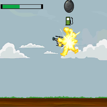 O objetivo é alcançar a maior distância possível, coletando combustível e desviando das bombas encontradas ao redor do combustível.