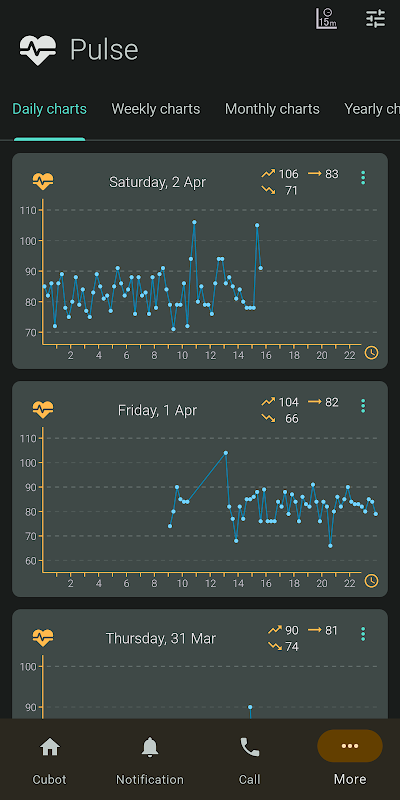 - رسوم بيانية يومية، أسبوعية، شهرية وسنوية