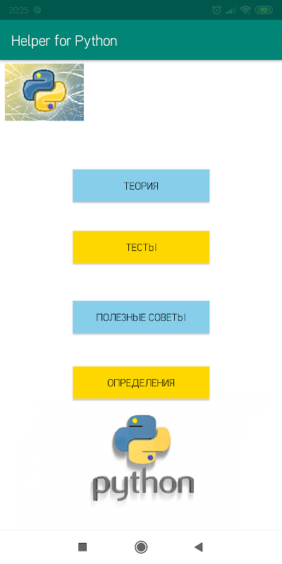 Приложение Helper for Python - это программа по обучению такого языка программирования, как Python, одного из самых востребованных и современных. Изучите теорию, определения, пройдите тесты к каждому уроку и узнайте свой уровень знаний Python. Пользуйтесь советами и учитесь писать программы. Успехов в обучении!