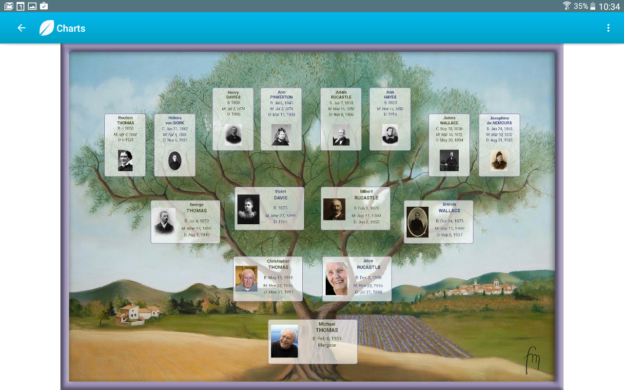 Heredis vous propose des fonctions essentielles pour emporter partout sa généalogie sur Android : l'envoi de son ficher Heredis, la visualisation, la navigation, l'ajout d'individus, l'édition des dictionnaires lieux et sources, affichage des cartes, ajout de photos depuis l'appareil photo...