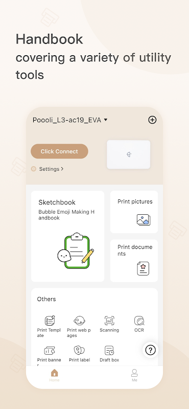 HerePrint هو تطبيق رائع يدعم مجموعة متنوعة من الطابعات. من أجل تلبية احتياجات الاستخدام المختلفة في سيناريوهات الطباعة اليومية ، يمكن لـ HerePrint تحديد الميزات المقابلة وتوفيرها لك تلقائيًا من خلال الحكم على طراز الجهاز الخاص بالطابعة التي تمتلكها. لذلك ، سواء كانت طباعة ملفات مكتبية أو ملصقات تخزين يومية أو صنع كتيب ، يمكن القيام بكل شيء من خلال HerePrint.