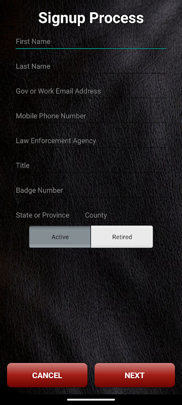 يجب التصديق على أنك ضابط إنفاذ القانون أثناء عملية التسجيل. سيتم فحصها الاشتراك الخاصة بك تماما قبل سيتم تفعيل التطبيق الخاص بك.