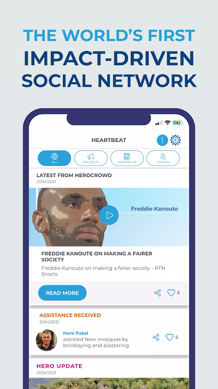 تبرع: تبرع بوقتك وطاقتك ومواردك عبر العديد من المشاريع ذات التأثير الكبير. استخدم وظائف البحث البديهية في HeroCrowd لإيجاد ودعم المشاريع التي تمنحك غرضًا - وفي العالم الأول ، راقب التأثير الإيجابي الذي أحدثته باستخدام لوحة معلومات التأثير الاجتماعي الخاصة بـ HeroCrowd.