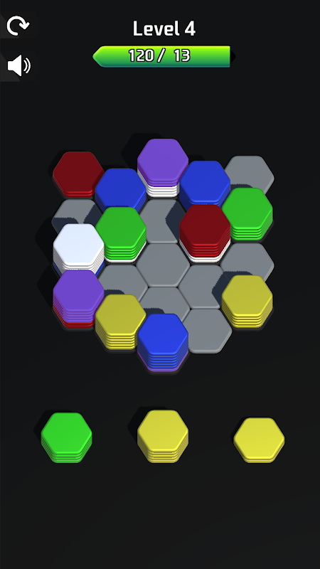 اسحب وأسقط الأشكال السداسية بجوار الأشكال السداسية الأخرى من نفس اللون لفرزها