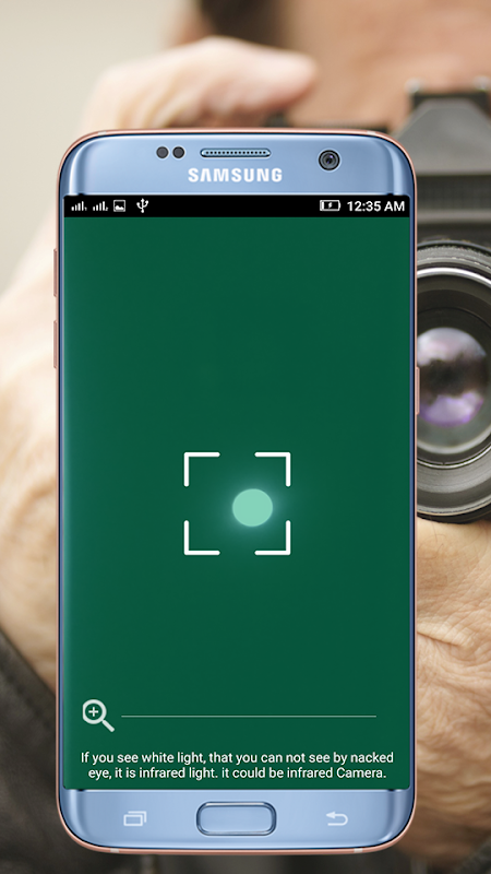 Open application and Move your phone close to any suspected areas like Bedroom, shower, window box, focal point looking the part or changing room reflect. This free Hidden Camera Locator - Spy Detector 2018 has one more functionality which is recognition of infrared camera with the help of infrared lights. Just open the infrared locator and sweep for white light that shows up on screen and not noticeable by naked eye. Such white light demonstrates infrared light. It could be an infrared camera.