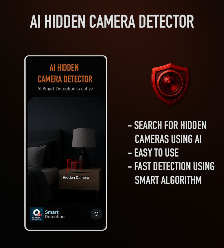 هل تبحث عن كاشف موثوق لكاميرات التجسس؟ Hidden Camera Detector AI هو التطبيق الأمثل لاكتشاف الكاميرات المخفية. فهو يسمح لك بتحويل هاتفك إلى كاشف للأجهزة المخفية دون الحاجة إلى شراء كاشف أخطاء فعلي للعثور على أجهزة التجسس.