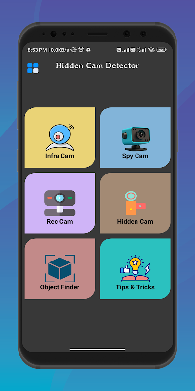 من خلال تطبيق كاشف الكاميرا الخفية هذا ، يمكن للمستخدمين بسهولة اكتشاف برامج التجسس والبرامج الضارة المختلفة بما في ذلك الأجهزة الإشعاعية.