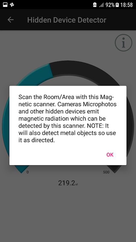Don’t let anyone follow you and ruin your privacy! Use the hidden device search app Hidden Device Detector! It allows you to find hidden devices in your surroundings either by using camera feature or by sensing the magnetic field of the electronic devices.