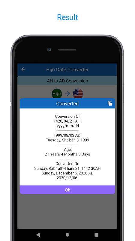 تحويل التاريخ الهجري إلى تاريخ اللغة الإنجليزية (محول التاريخ غير متصل). تحسب العمر