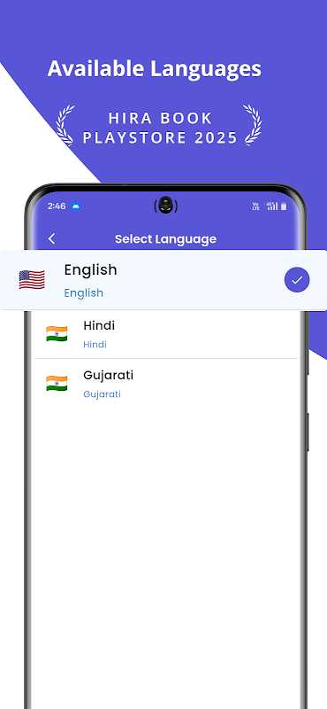 يتوفر HiraBook بثلاث لغات - الهندية، والغوجاراتية، والإنجليزية - مما يجعله سهل الاستخدام لجميع العاملين في صناعة الماس. يدعم التطبيق أيضاً الوضعين الداكن والفاتح، مما يتيح لك تغيير السمات حسب تفضيلاتك.