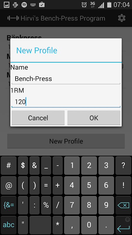 التطبيق بتتبع الخاص بك التدريبات (مجموعات، ممثلين، الوزن) ويسجل التقدم المحرز الخاص بك. يمكنك إنشاء حالة profile.in أكثر من واحد كنت ترغب في استخدام البرنامج لمزيد من التدريبات من مقاعد البدلاء الصحافة.