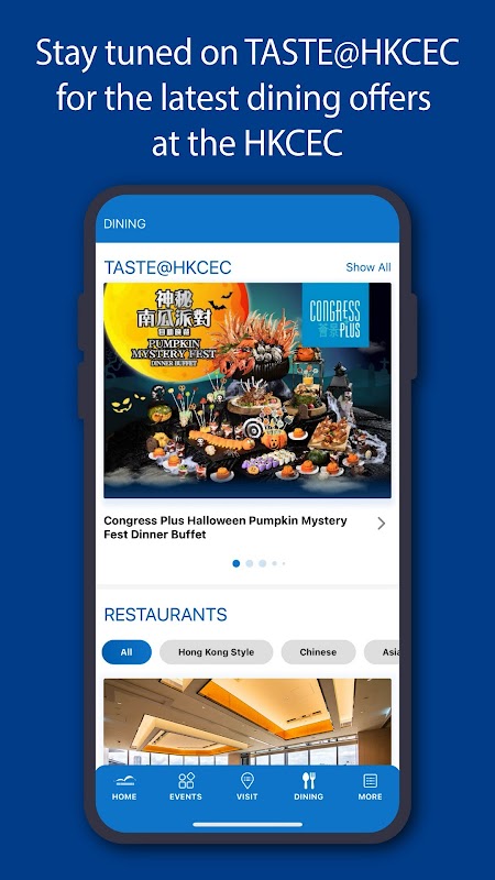 استكشف HKCEC من خلال تطبيقنا. حقق أقصى استفادة من زيارتك ولا تفوت الأحداث المهتمة وعروض الطعام لدينا.