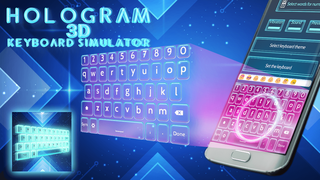 Be different from others and original – use this free “flash keyboard” app that will make your phone stand out in the mass of dull mobile phones! Download our 💎 Hologram 3D Keyboard Simulator 💎 and watch your phone shine with a whole new glow! This app is specially designed for people who love hologram designs, neon wallpapers, 3D wallpapers or tech wallpapers. It´s a simulator of three-dimensional laser projection and it’s the best free app with many beautiful themes and customization with color, layout, font and many languages.