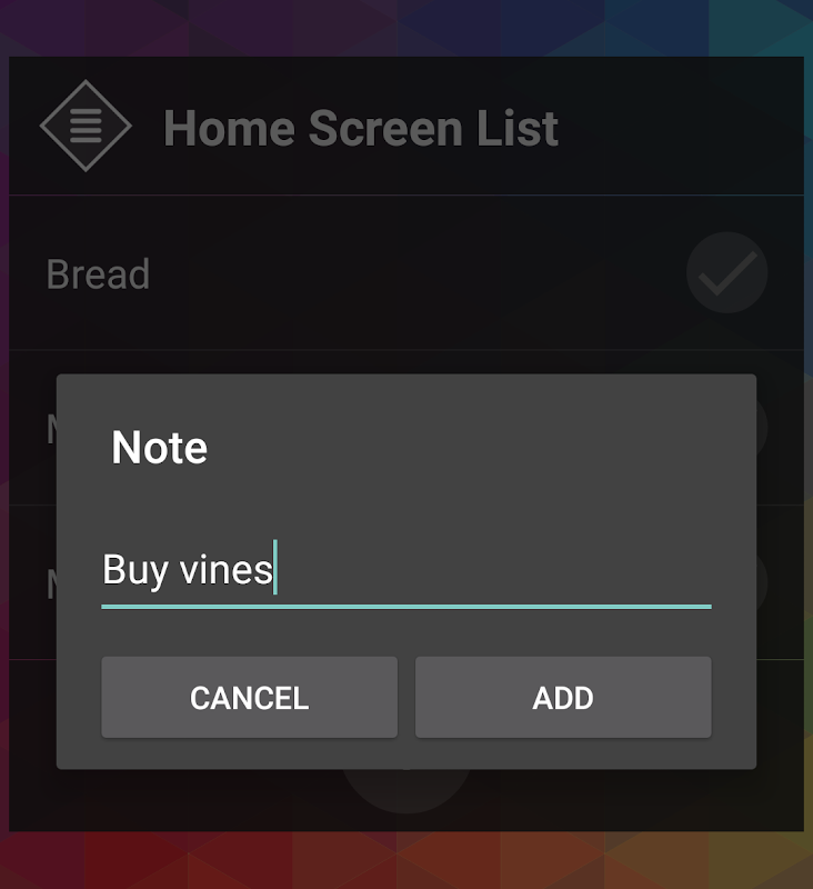 الشاشة الرئيسية - قائمة التطبيقات التي تسمح لك بسرعة لخلق قائمة التسوق / ويلاحظ على الشاشة الرئيسية للجهاز.