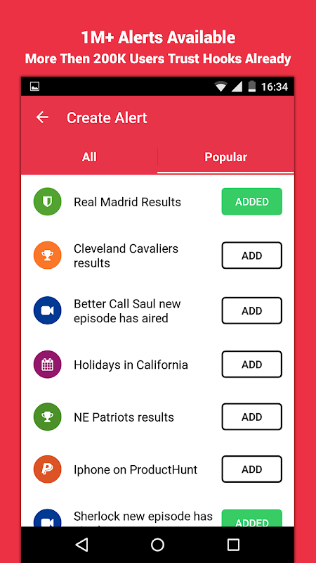 Stay up to date on anything through push notifications. Whether you’re into sports, movies, news, food, celebrities, or a bit of everything, Hooks will notify you right on your lockscreen.