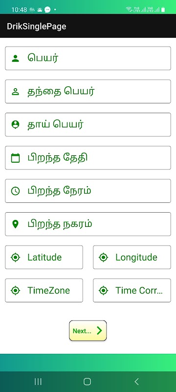 إعداد برجك للصفحة الواحدة على أساس Thirukanidham Panchangam
