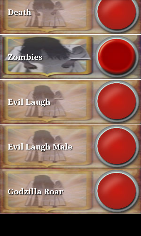 اللعب مع الخوف يبدو أن مخيفة ويضحك مع أصدقائك مع مضحك لحظة زر الرعب الصوت، في حالة رعب تطبيق زر هناك العشرات من أصوات مخيفة مثل تخوف، الخفافيش، الضحك الظلام، الخوف الصوت والوفاة والكسالى، ويضحك الشر، والشر الضحك الذكور، غدزيلا هدير، والجحيم، التشويق واردة، والرعب، والوحش، والذعر، مخيف، والخوف، والفتيات عصبي، باب الصرير، أيام غريبة، صفارات الإنذار اعصار، حيث مومياء بلدي.
