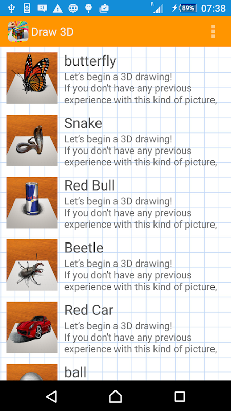 تثبيت هذا التطبيق "كيفية رسم 3 صور"! العديد من الدروس واضحة وبسيطة للمبتدئين في مجال الرسم. مع دروسها سهلة ومثيرة للاهتمام، وخطوة خطوة سوف يعلمك لخلق بنفسك روائع 3D فريدة من نوعها وتعليم من الصفر كيفية رسم صورة 3D !!