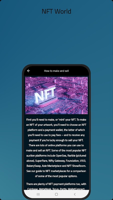 So If you think about NFT and how to create one for your Arts , this App helps you to know how to do it in Right way.