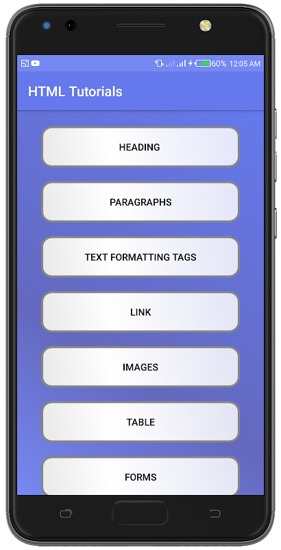 Here i am uploading HTML Tutorials with full coding structure. Here are Five panels as under.