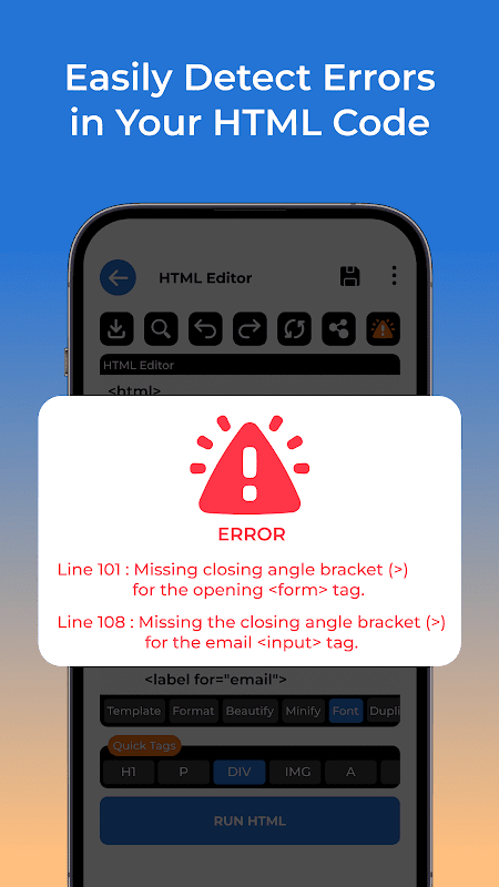 تطبيق HTML Viewer, Reader & Editor هو تطبيق مفيد وخفيف الوزن مصمم للمستخدمين الذين يرغبون في عرض محتوى HTML وتعديله ومعاينته وإدارته مباشرةً على أجهزتهم. سواء كنت تتعلم أساسيات برمجة الويب، أو تفحص ملفات الترميز، أو تُجري تغييرات سريعة في أي وقت، يوفر لك هذا التطبيق تجربة سلسة ومنظمة بأدوات بسيطة وواجهة مستخدم سهلة الاستخدام.