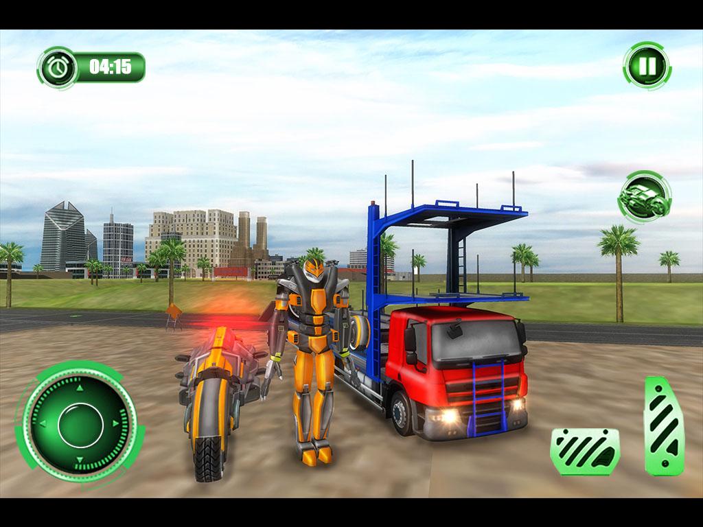 This futuristic robotic transformer game contains super amazing fast bike, furious city cars, multi transporter truck and big shadow futuristic robots so this is the time to attain the perfection liken to the real superhero moto car driver, extreme moto bike rider, furious robot car driver and pro multi trailer robot truck driver of 2018.Dont ignore the time restriction as failure to transport robot cars, bikes on multi transport truck will result in level failure.