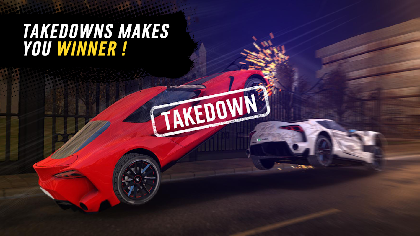 ولمن يتوقون إلى خوض التحدي الأعظم في السباقات، تقدم Hyper Takedown Race وضعًا متعدد اللاعبين مثيرًا. تنافس مع لاعبين من جميع أنحاء العالم وأظهر مهاراتك في سباقات متعددة اللاعبين حماسية. سيطر على قوائم المتصدرين، واربح المكافآت، وأثبت أنك بطل المسار بلا منازع. 🏆🥇🏆