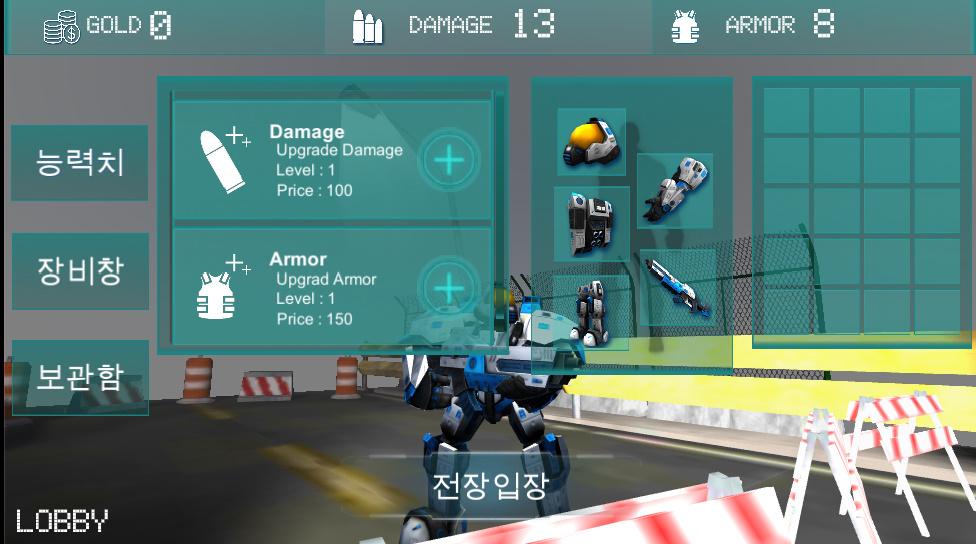 스테이지 내에서 획득한 무기는 로비에서 장착 가능합니다.