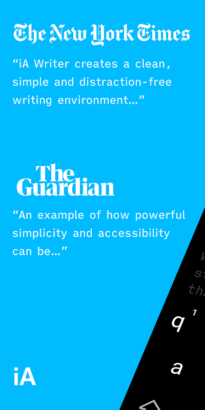 “iA Writer is an example of how powerful simplicity and accessibility can be.” ***** The Guardian