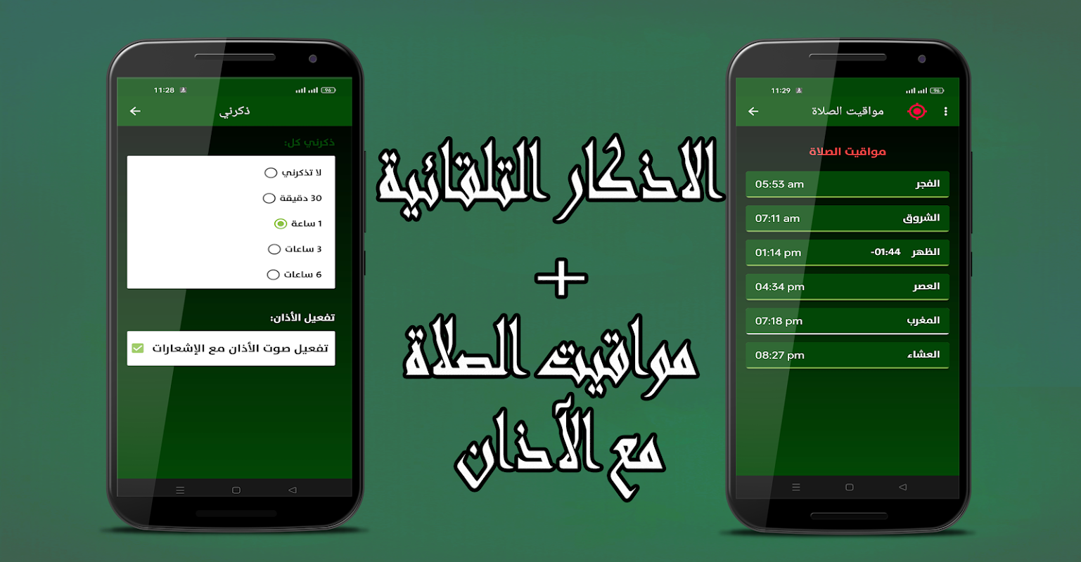 ايضا ميزة لتفعيل صوت الأذان التلقائي ليذكرك بصلاتك.
