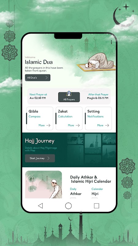 🤲 أدعية وأذكار: يمكنك الوصول إلى مجموعة غنية من الأدعية والأدعية اليومية لمختلف المناسبات، مما يتيح لك طلب الهداية والحماية والبركات في حياتك اليومية.