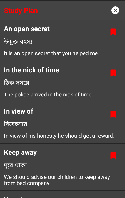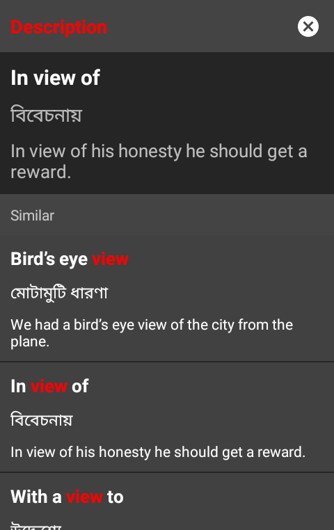 There is More Then 1000 Idioms and Phrases With Bangla, English and Example.