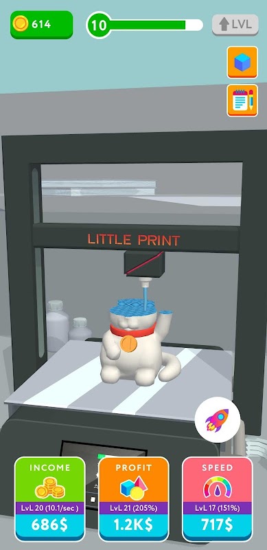 Print all sorts of items, open new blueprints, improve printing speed, increase printing profitability and have fun!