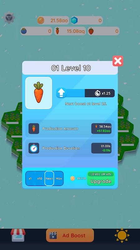 سواء كان لديك دقيقة أو ساعة، فإن Idle Harvest Tycoon يُقدم نموًا مُطردًا، وأجواءً مُريحة، والعديد من الميزات لتحسينها.