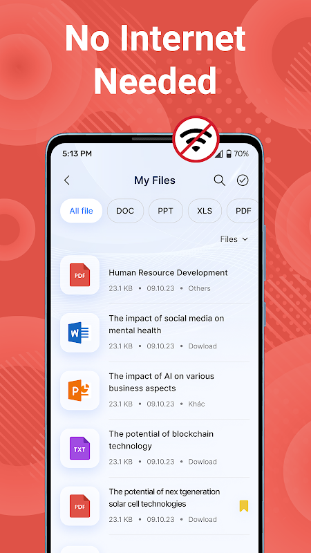 - مجموعة متنوعة من الوصول إلى الملفات: افتح أي تنسيق ملف، بما في ذلك PDF وDOC وDOCX وXLS وXLSX وPPT وTXT، مباشرة من جهازك المحمول. إنه مثل وجود مكتب متنقل في جيبك!