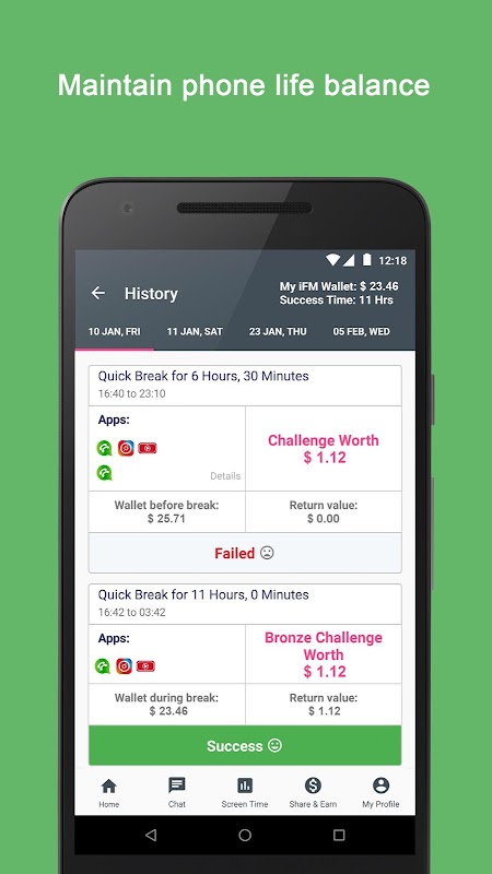 On successful completion of your less phone usage challenge, you will get full refund in your iFocusMode app wallet to help you take up another challenge.
